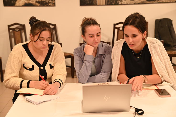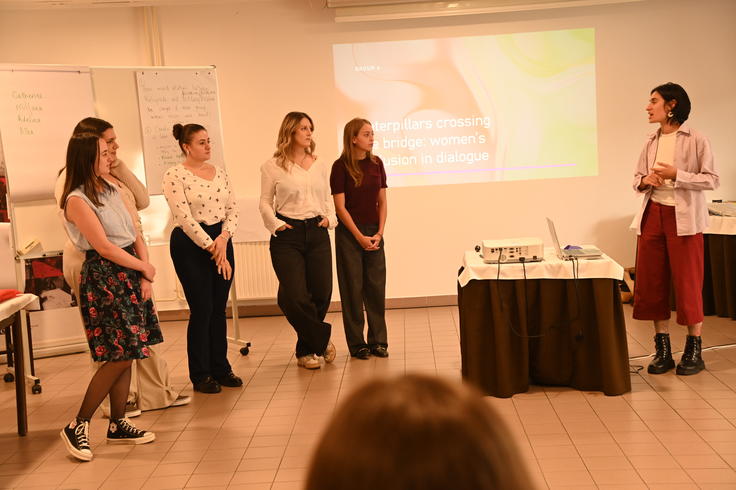 Valdrina with fellow young women from Prishtinë/Priština and Belgrade during a session of the 11th Dialogue Academy. October 2025.