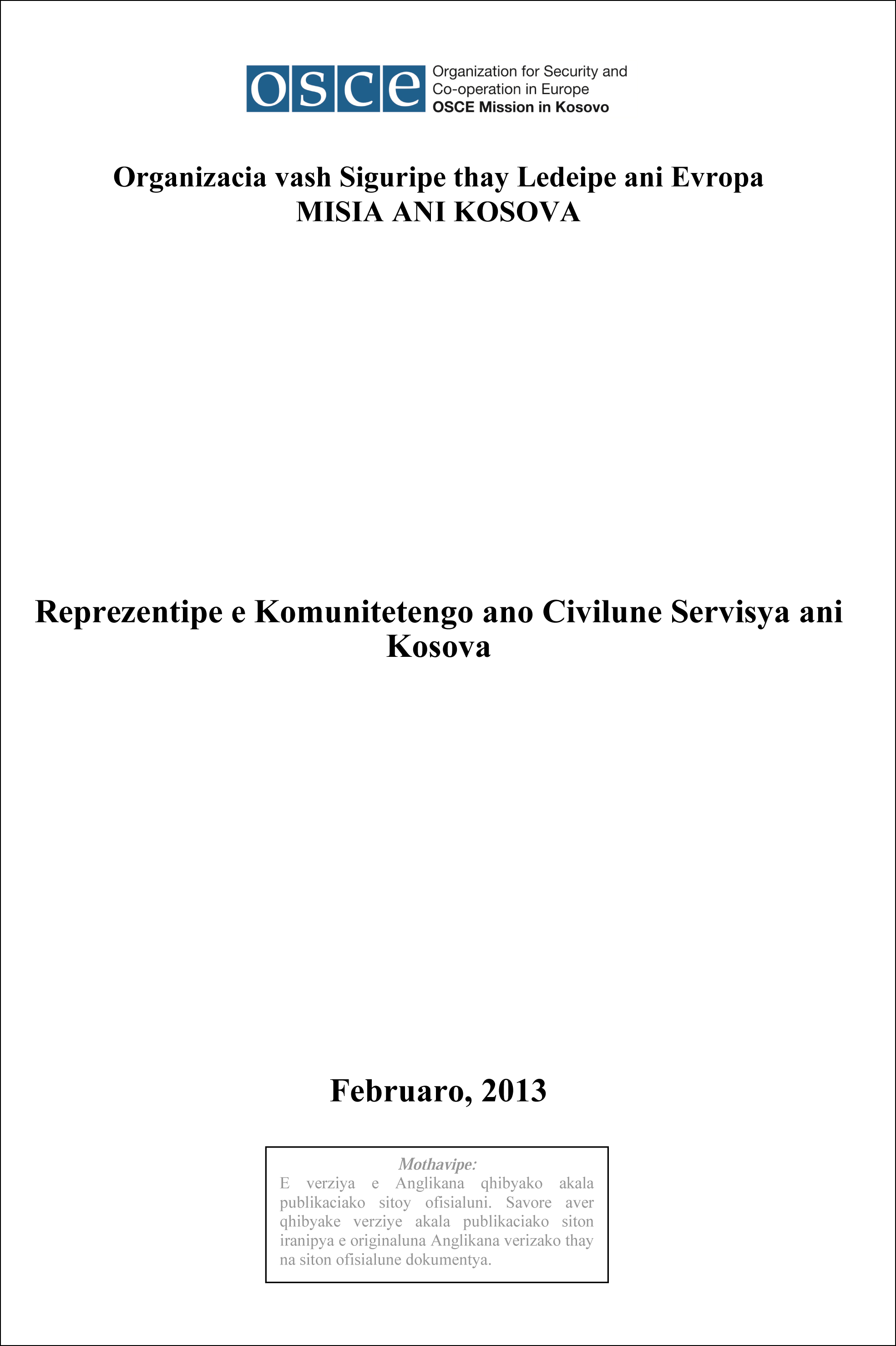 Reprezentipe e Komunitetengo ano Civilune Servisya ani Kosova.
