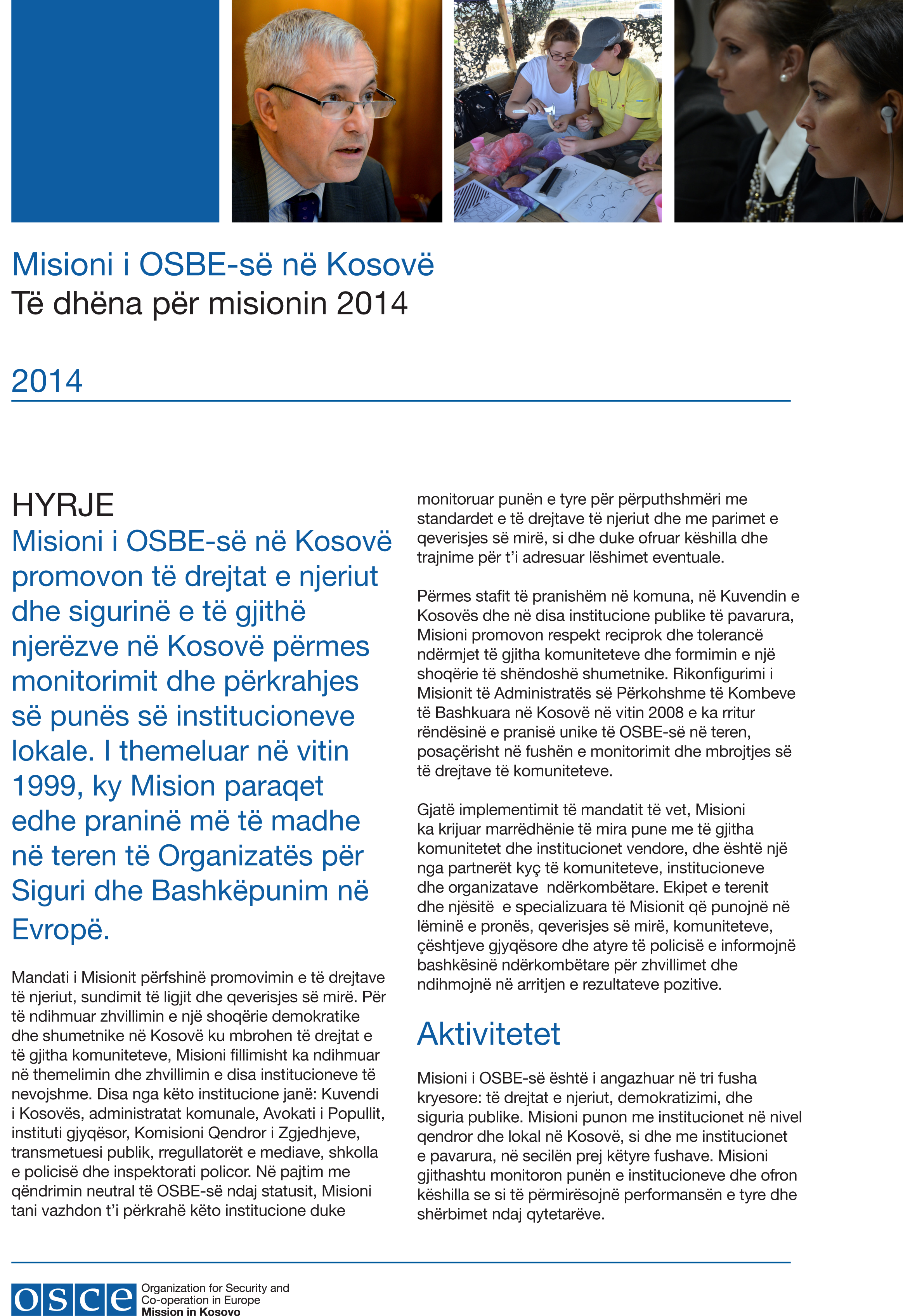 "Misioni i OSBE-së në Kosovë Të dhëna për misionin 2014" - ballina.