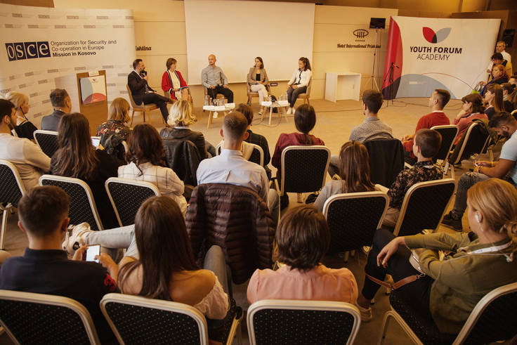 Pjesëmarrësit e forumit rinor gjatë një diskutimi, 25 shtator 2019.