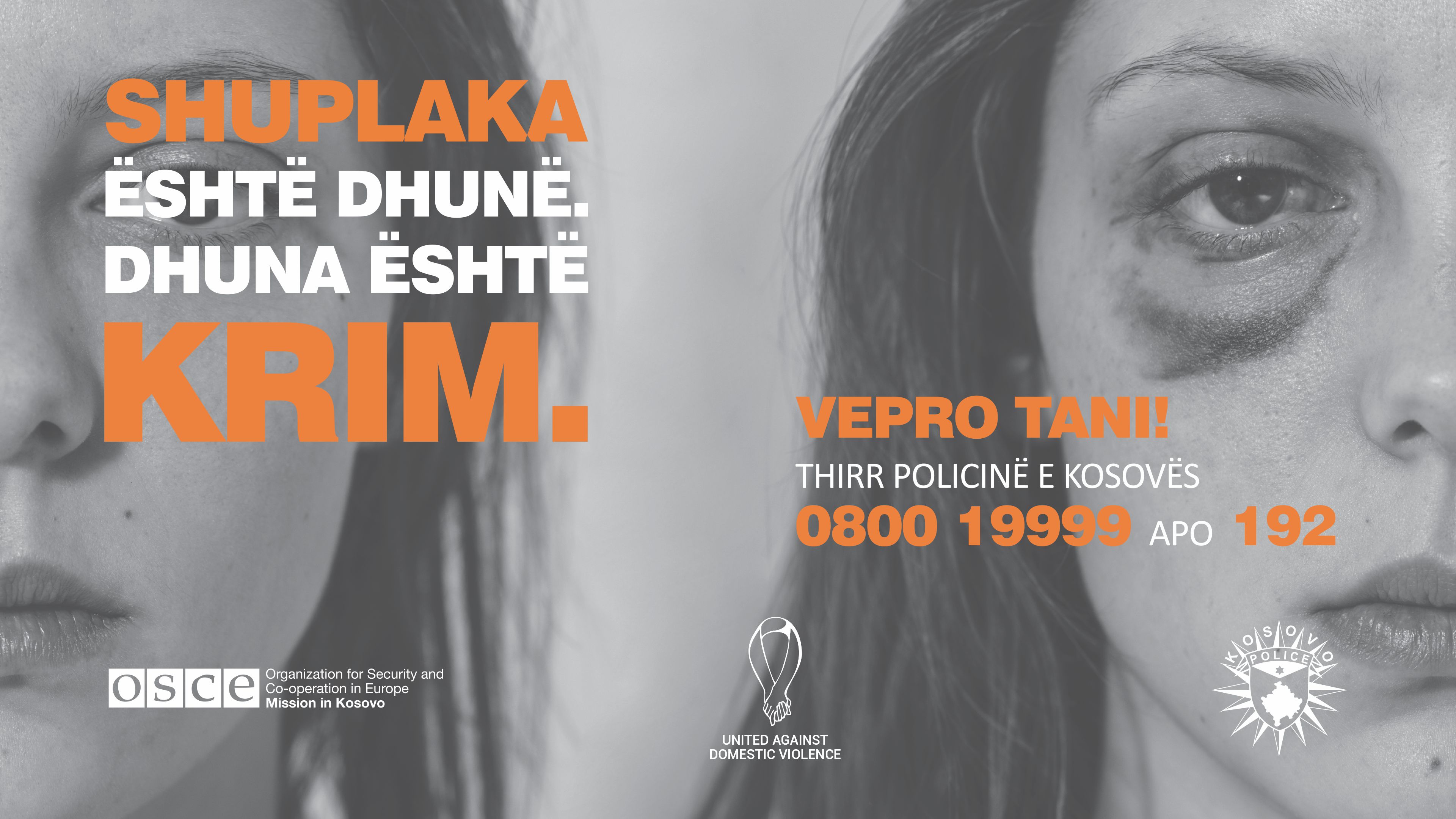 Billbordi me mesazhin kryesor të fushatës së Misionit të OSBE-së në Kosovë për të shënuar 16 Ditët e Aktivizmit kundër Dhunës në Baza Gjinore