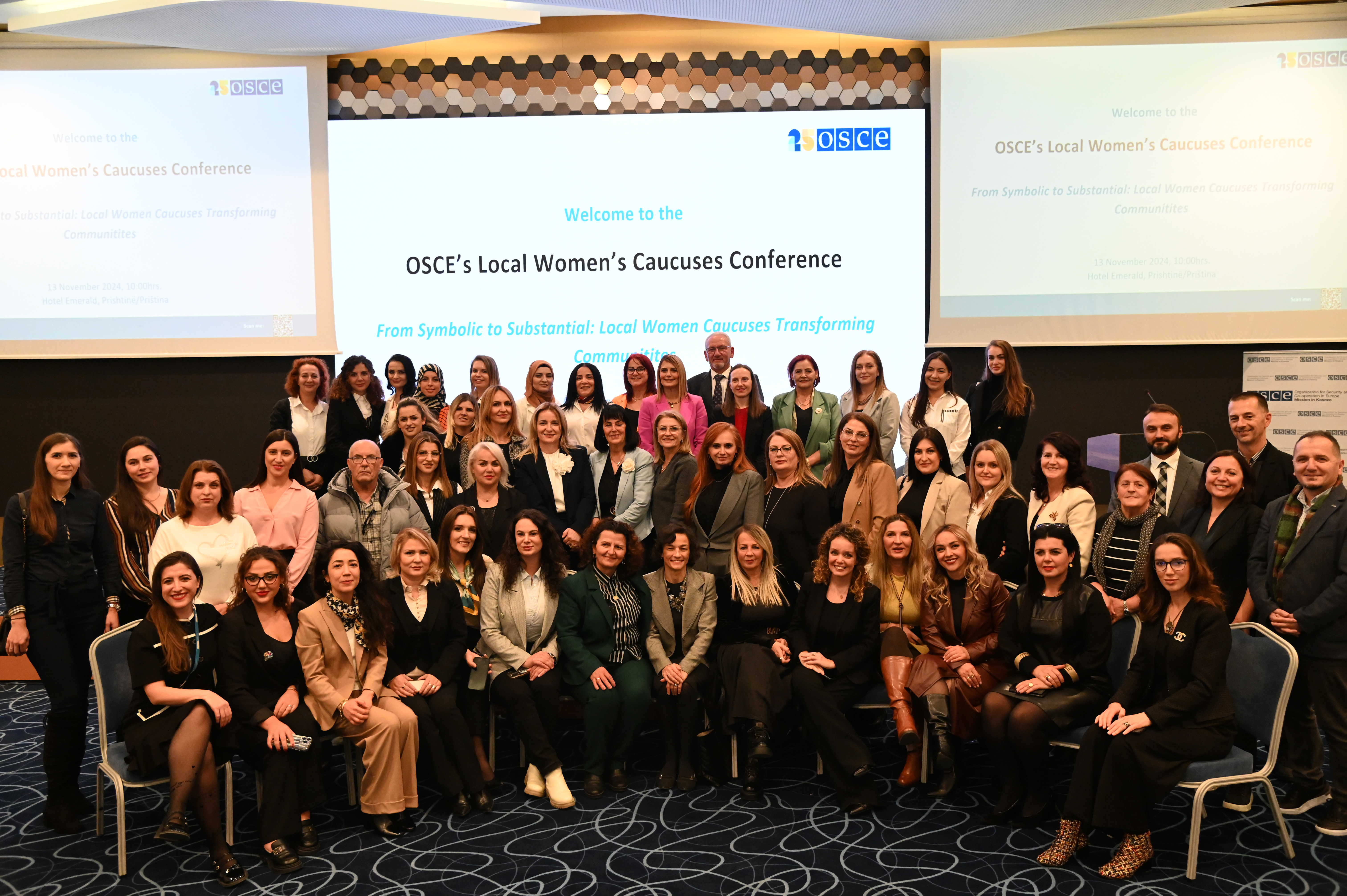 Anëtaret e GGKK-së dhe pjesëmarrëset e EmPOWER gjatë konferencës "Grupet e Grave të Kuvendeve Komunale që Transformojnë Komunitetet", Prishtinë, nëntor 2024.(OSBE/Fitim Xharra)