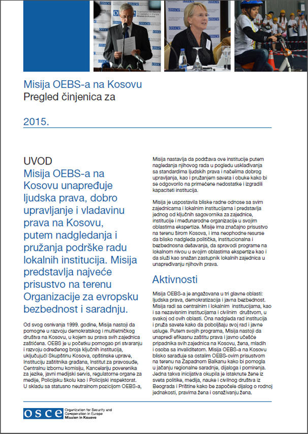 Naslovna stranica - "Misija OEBS-a na Kosovu Pregled činjenica za 2015"