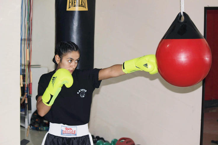 Arljinda Muća tokom treninga u očevom bokserskom klubu 'Borac' u Peći.