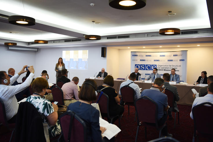 Maria Paschou, v.d. šefa Odeljenja za pravo i pravosuđe, Misije OEBS-a na Kosovu predstavlja najnoviji tematski izveštaj o Pravu na efektivno zastupanje u krivičnom postupku i sistemu imenovanja po službenoj dužnosti. Priština 11. avgust 2022.
