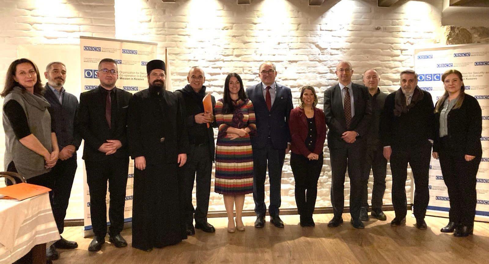 Predstavnici verskih zajednica i predsednik opštine Prizren Šaćir Totaj na okruglom stolu o unapređivanju dijaloga i partnerstva sa opštinskim vlastima, koji je potpomogao OEBS, Prizren, 6. decembar 2023. godine