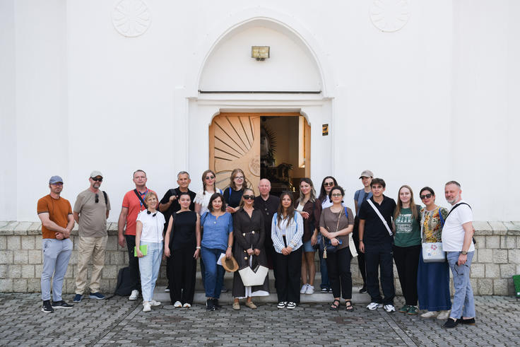 Studenti poziraju na kraju terenskog rada zajedno sa stručnjacima za kulturno nasleđe i članovima Misije OEBS-a. 19. avgust 2025 (OEBS/Leurina Mehmeti).