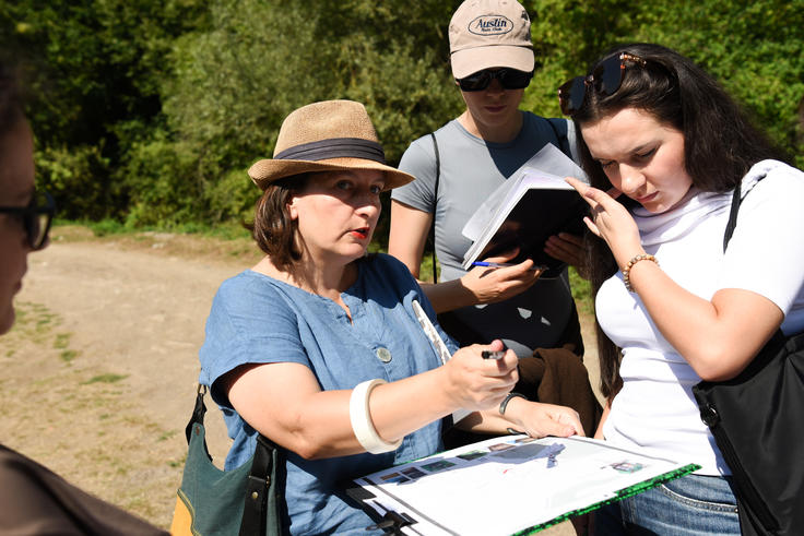 Studenti proučavaju raspored sela Letnica pre početka terenskog rada. 19. avgust 2025 (OEBS/Leurina Mehmeti).