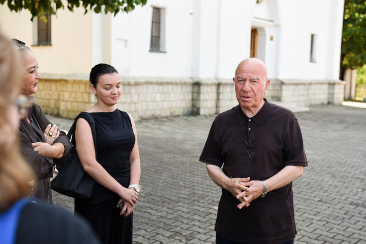 Don Ljuš Đerđi prenosi studentima svoja znanja o istorijskom značaju crkve. 19. avgust 2025 (OEBS/Leurina Mehmeti).
