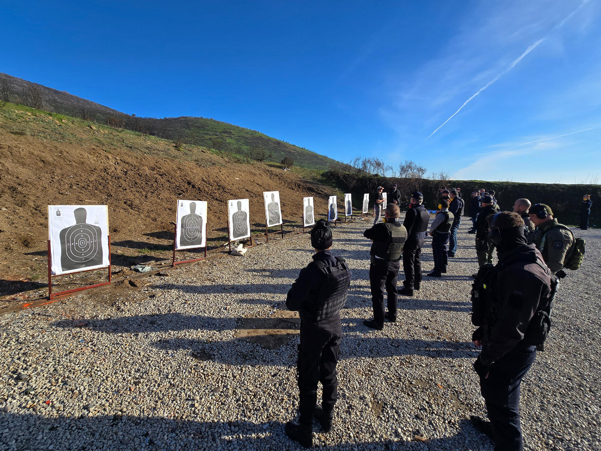 Dvadeset i jedan službenik organa za sprovođenje zakona iz različitih institucija za javnu bezbednost okuplja se na strelištu u Crnuši, na brdu u blizini Južne Mitrovice, i priprema za još jedan dan praktične obuke o rukovanju pištoljima i dugim cevima.