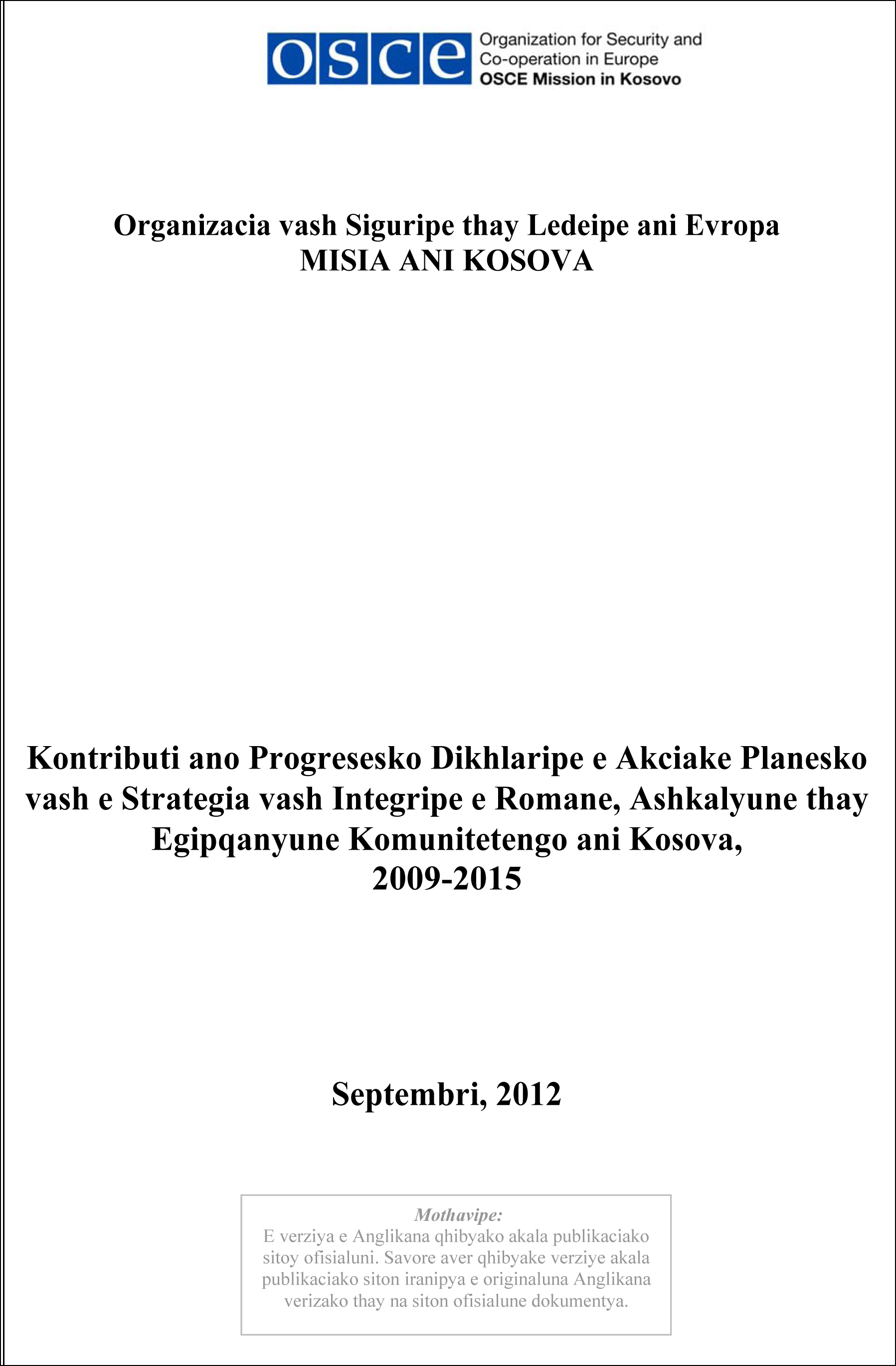 Kosova’da Roman, Aşkali ve Mısırlı Toplulukların Entegrasyonu Stratejisine ait Eylem Planı hakkında İlerlemenin Gözden Geçirilmesine Yönelik Katkı 2009-2015.